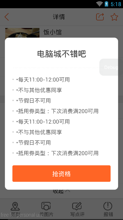 - Q:在“抢资格”的button点击后,如何dismiss掉Dialog?A:下面代码中是直接调用局部变量popup的dismiss方法来做的。在这之前我的实现方法是:把Dialog作为tag设置进“抢资格”的button,然后在onClick中((Dialog) v.getTag()).dismiss()。