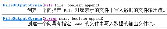 继续查阅FileOutputStream的API。发现在FileOutputStream的构造函数中,可以接受一个boolean类型的值,如果值true,就会在文件末位继续添加。