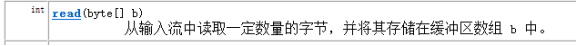 public class FileInputStreamDemo2 { public static void main(String[] args) throws IOException { /* * 演示第二个读取方法, read(byte[]); */ File file = new File("c:\\file.txt"); // 创建一个字节输入流对象,必须明确数据源,其实就是创建字节读取流和数据源相关联。 FileInputStream fis = new FileInputStream(file); //创建一个字节数组。 byte[] buf = new byte[1024];//长度可以定义成1024的整数倍。 int len = 0; while((len=fis.read(buf))!=-1){ System.out.println(new String(buf,0,len)); } fis.close(); } }