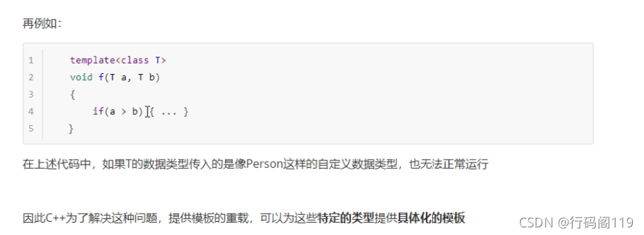 //模板不是万能的,有些特定数据类型,需要用具体化方式做特殊实现