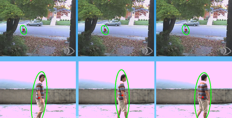 1 #include "opencv2/opencv.hpp" 2 #include<iostream> 3 using namespace std; 4 using namespace cv; 5 6 Mat MoveDetect(Mat frame1, Mat frame2) 7 { 8 Mat result = frame2.clone(); 9 Mat gray1, gray2; 10 cvtColor(frame1, gray1, CV_BGR2GRAY); 11 cvtColor(frame2, gray2, CV_BGR2GRAY); 12 13 Mat diff; 14 absdiff(gray1, gray2, diff); 15 imshow("absdiss", diff); 16 threshold(diff, diff, 45, 255, CV_THRESH_BINARY); 17 imshow("threshold", diff); 18 19 Mat element = getStructuringElement(MORPH_RECT, Size(3, 3)); 20 Mat element2 = getStructuringElement(MORPH_RECT, Size(25, 25)); 21 erode(diff, diff, element); 22 imshow("erode", diff); 23 24 dilate(diff, diff, element2); 25 imshow("dilate", diff); 26 27 vector<vector<Point>> contours; 28 vector<Vec4i> hierarcy; 29 //画椭圆及中心 30 findContours(diff, contours, hierarcy, CV_RETR_EXTERNAL, CV_CHAIN_APPROX_NONE); 31 cout<<"num="<<contours.size()<<endl; 32 vector<RotatedRect> box(contours.size()); 33 for(int i=0; i<contours.size(); i++) 34 { 35 box[i] = fitEllipse(Mat(contours[i])); 36 ellipse(result, box[i], Scalar(0, 255, 0), 2, 8); 37 circle(result, box[i].center, 3, Scalar(0, 0, 255), -1, 8); 38 } 39 return result; 40 } 41 42 void main() 43 { 44 VideoCapture cap("E://man.avi"); 45 if(!cap.isOpened()) //检查打开是否成功 46 return; 47 Mat frame; 48 Mat result; 49 Mat background; 50 int count=0; 51 while(1) 52 { 53 cap>>frame; 54 if(frame.empty()) 55 break; 56 else{ 57 count++; 58 if(count==1) 59 background = frame.clone(); //提取第一帧为背景帧 60 imshow("video", frame); 61 result = MoveDetect(background, frame); 62 imshow("result", result); 63 if(waitKey(50)==27) 64 break; 65 } 66 } 67 cap.release(); 68 }