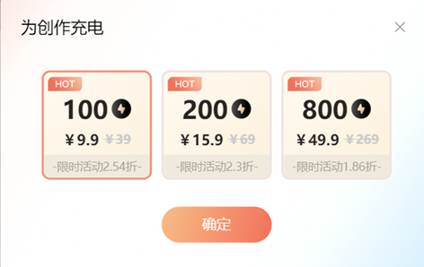 或者你不想每天签到这么麻烦,可以充钱,800个电量只要50块钱不到,就可以使用很久了: