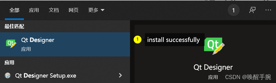 然后键盘按下Win+S呼出Cornata主面板(搜索框),输入designer,如果看到跟下图类似的结果说明PyQt Designer已经被安装。