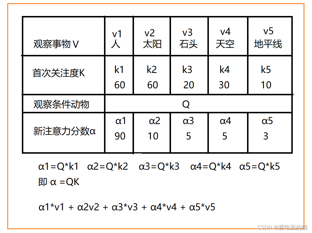上述描述过程中,根据动物观察就是注意力条件 记为Q(Query),往往给出的条件都是观察这幅图的非常重要因素。