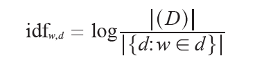 是在语料库D中文档的数目,分母是语料库中包含单词w的文档数d。将两者相乘就可以得到矢量v中对应元素的tf-idf权重。