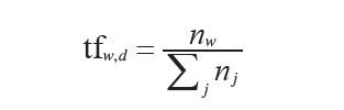常用的权重是tf-idf,单词w在文档d中的词频是: