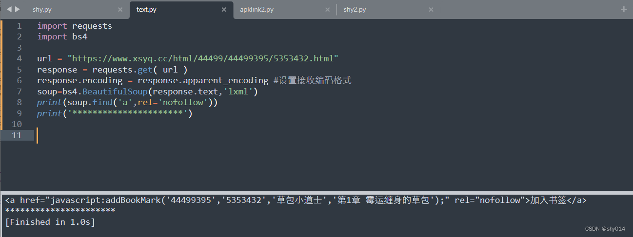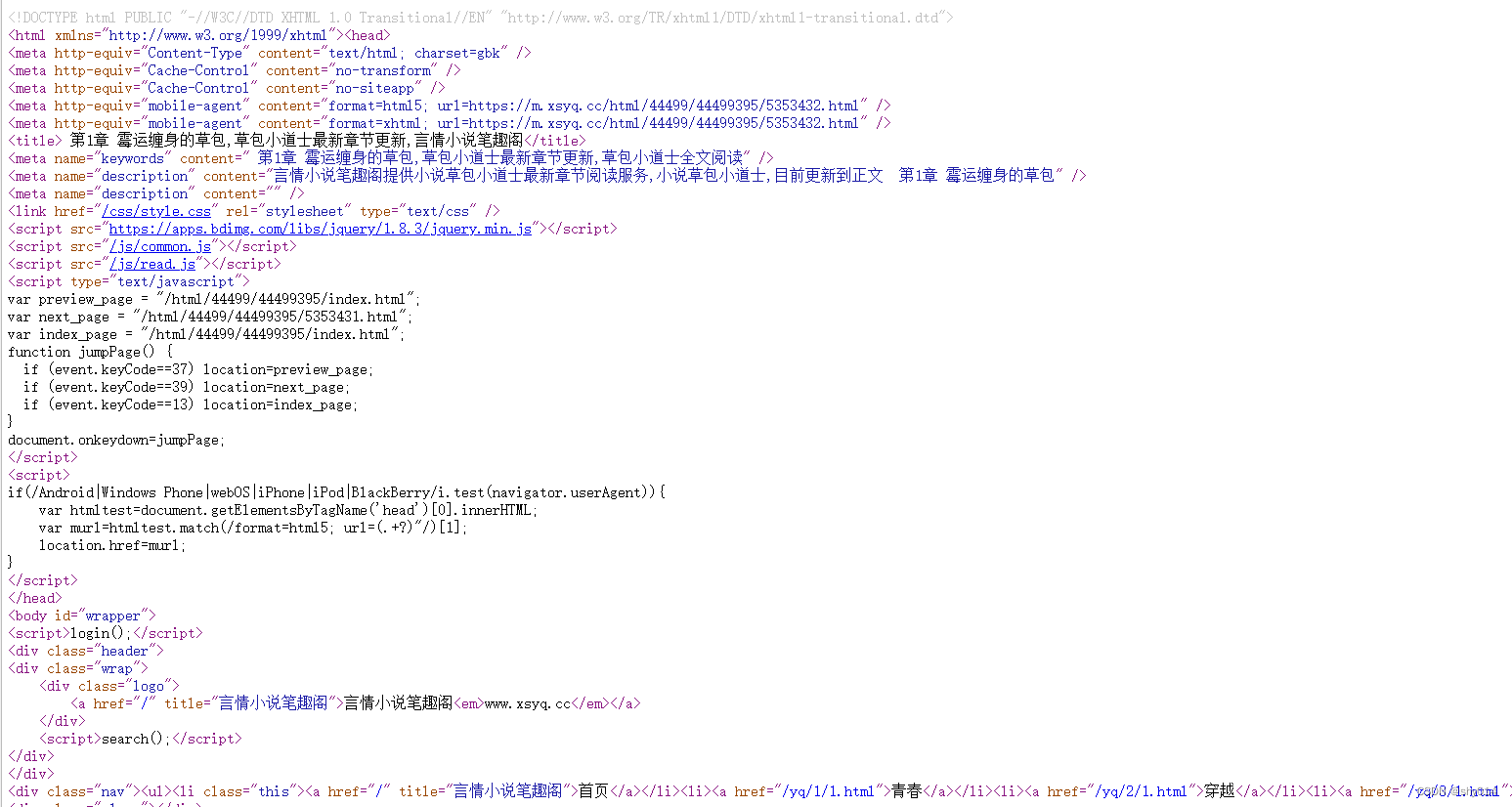 我为什么一直拿这个网站做测试了,因为我想看这本小说,但是网上却没有下载链接,于是乎我就打算学习完成后直接爬取。