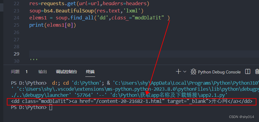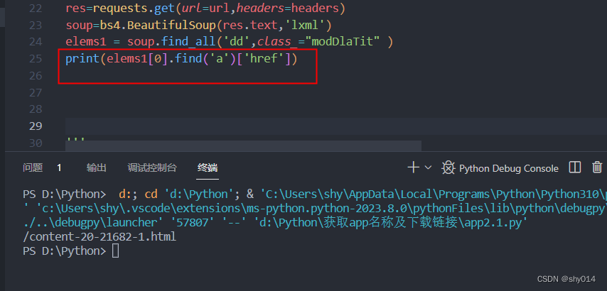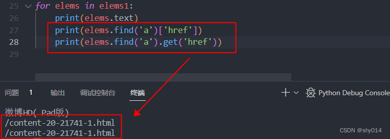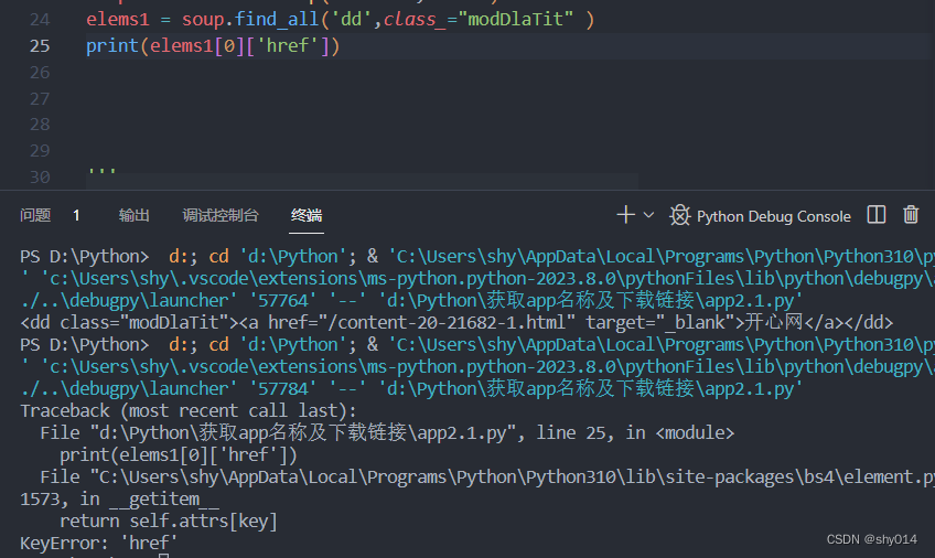 这个时候使用print(elems1[0].['href'])取href的值报错,无法直接取出