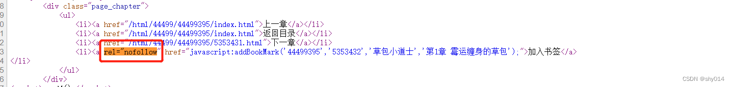 这个a标签中有个rel属于,它的值为nofollow,这样我们就可以使用soup.fing('a',rel='nofollw')将这条a标签的内容提取出来。