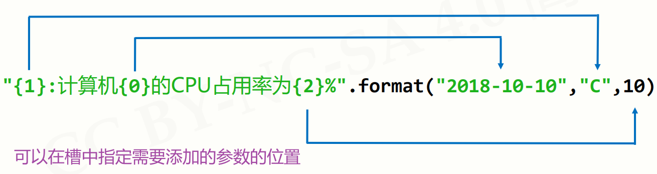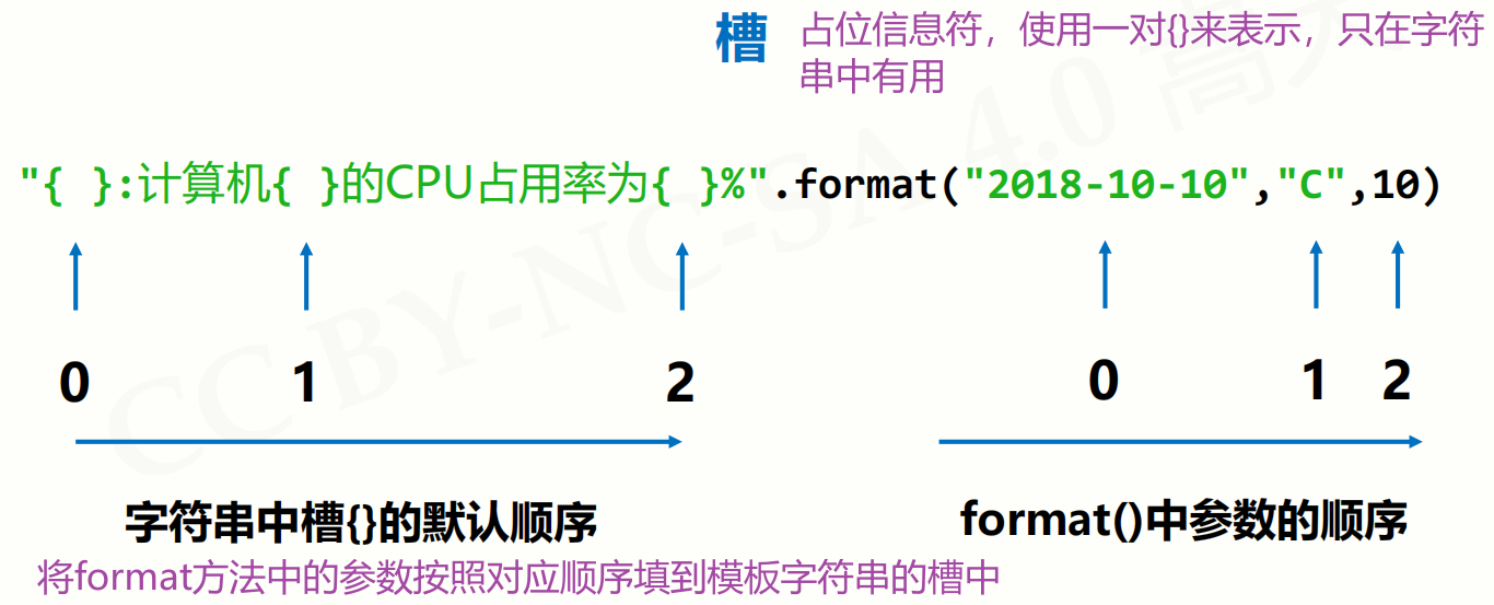 - Python 语言使用槽机制加上 format 方法来形成字符串的格式化