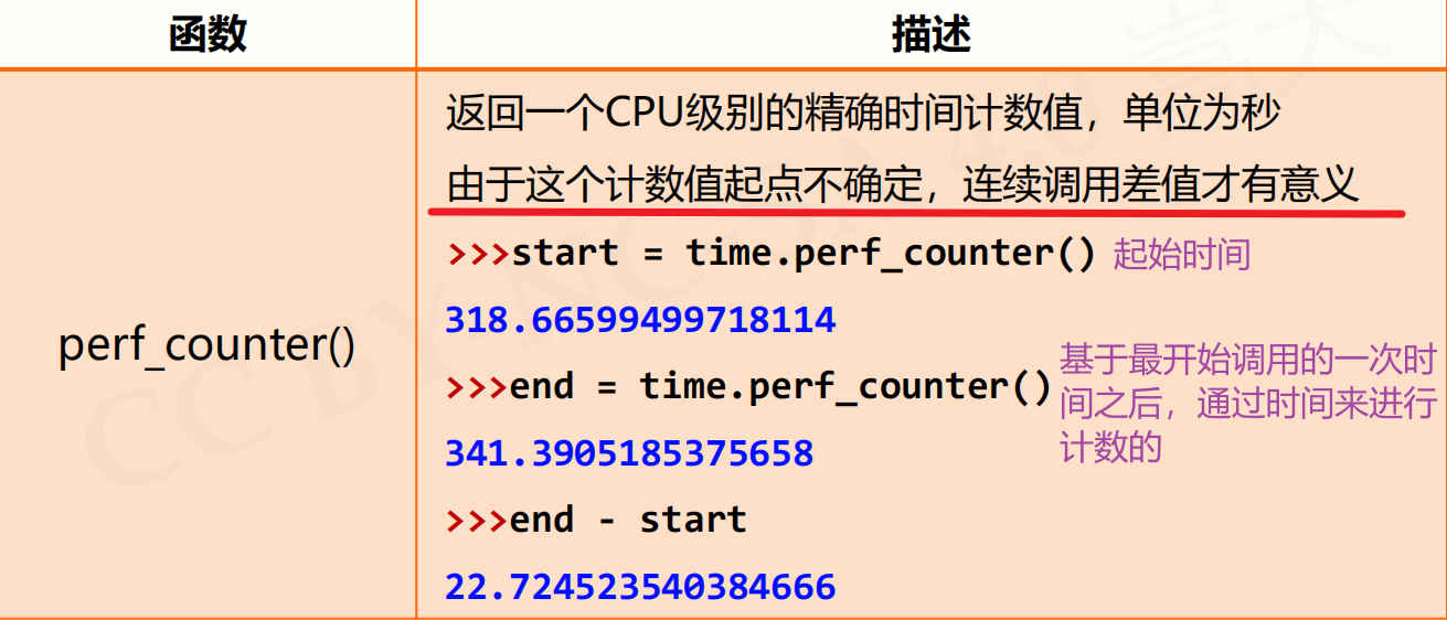 - 测量时间:perf_counter() 能够记录时间的流逝