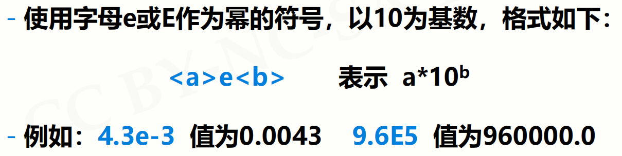 (4)浮点数可以采用科学计数法表示,可以通过这种方式表达特别大或特别小的浮点数