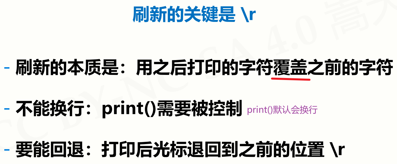 # 即每一次都是从行首不断地输出信息,且不换行(单行刷新)