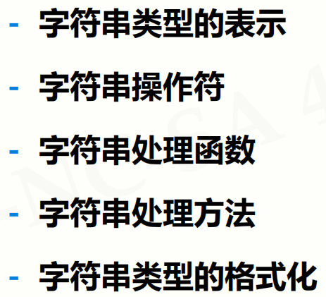 - 是字符的有序序列,可以对其中的字符进行索引(从0开始编号)