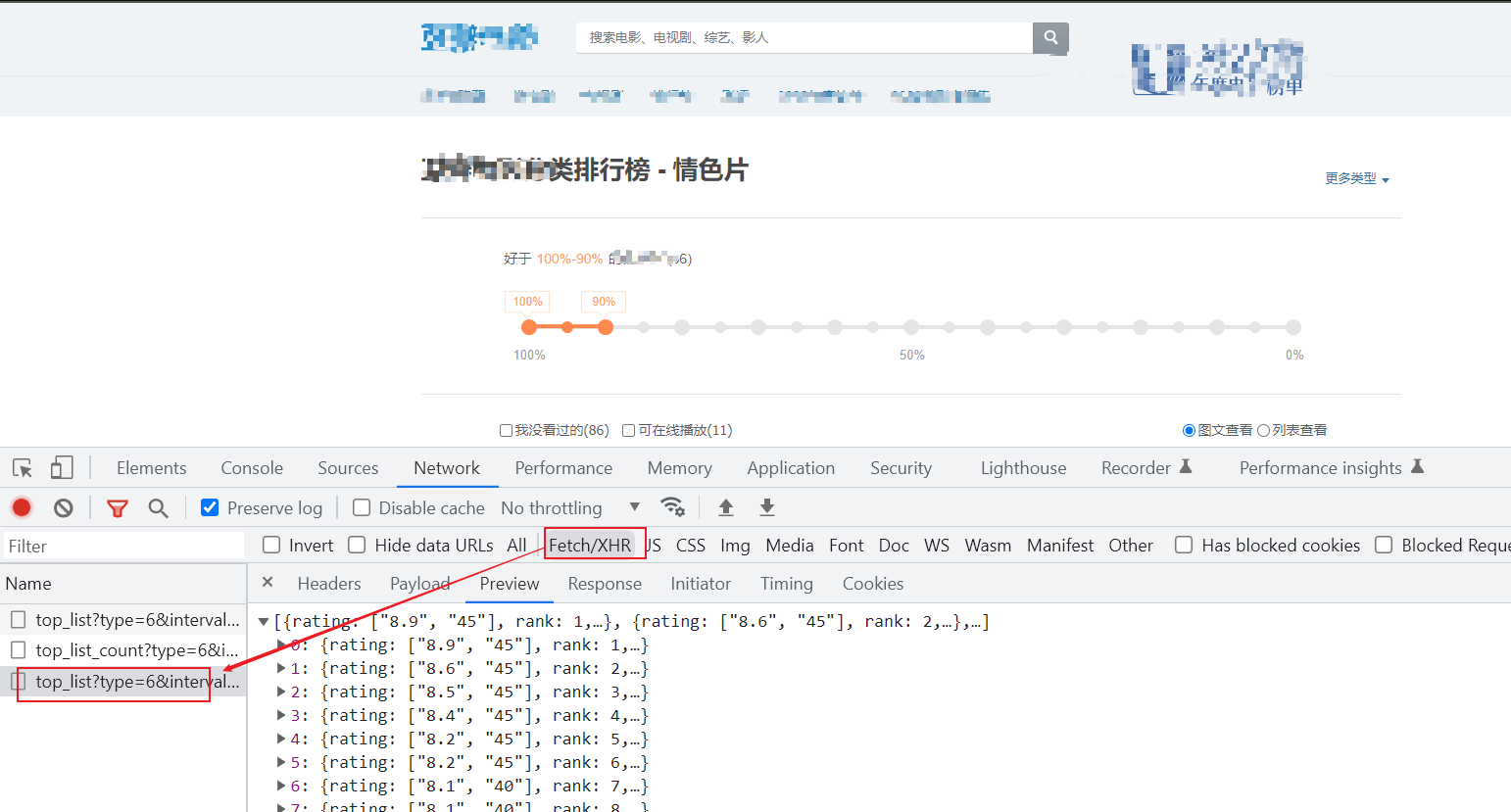 # 参数1:页码,参数2:每页显示条数, 参数2:电影类型: 6 为情色