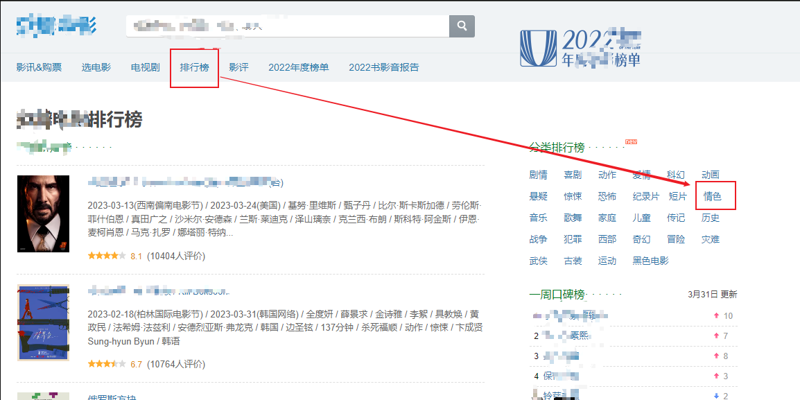 进入某瓣排行首页: