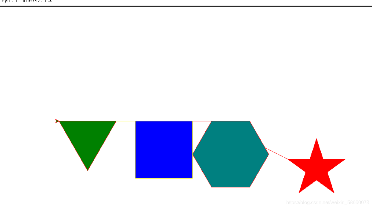 之前觉得不是特别喜欢python,现在越发觉得python是那么的有趣利用python turtle库绘图五角星from turtle import * #导入turtle库(python作图的库)color("red","red")#设置前景色和后景色begin_fill()#开始填充for i in range(5):fd(300) #fd 方法的实参是像素距离rt(144)end_fill(