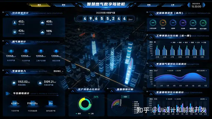 - 多维度数据整合可视化:数字孪生模型提供了丰富的多维度数据,UI 前端设计需要将这些数据进行有机整合并以可视化方式呈现。例如,在城市规划数字孪生项目中,数据涵盖了地理信息、人口分布、交通流量、建筑信息等多个维度。设计师可以通过创新的可视化手段,如采用分层叠加的地图形式,将不同维度的数据以不同的颜色、图标、透明度等进行区分展示,使用户能够在一个界面上全面了解城市的各种信息及其相互关系,为城市规划决策提供全面的数据支持。