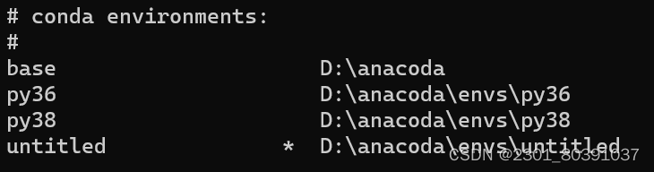 本人的输出结果。(如果首次配置虚拟环境则只有base)