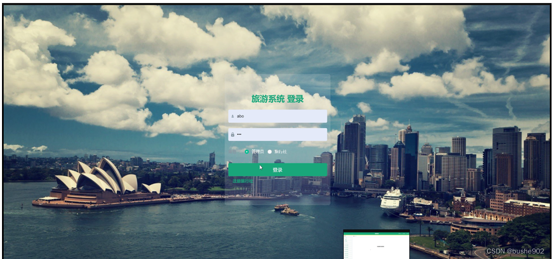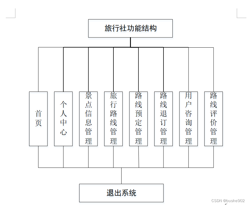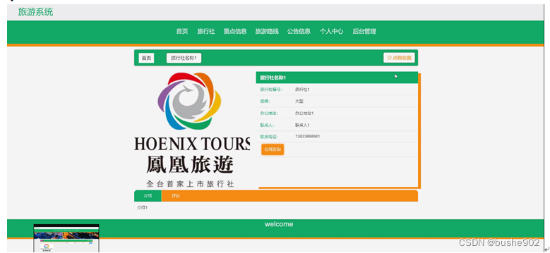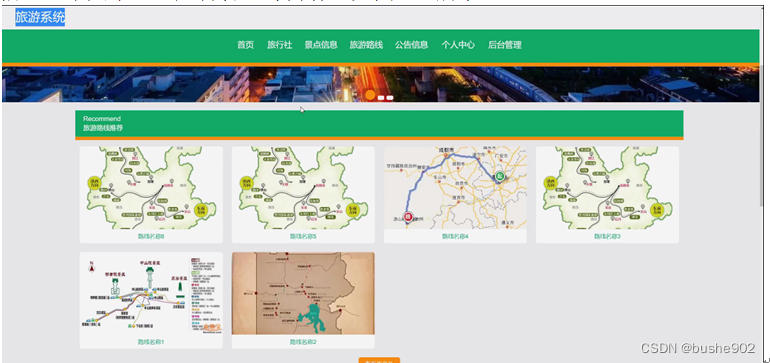 旅游系统,在系统首页可以查看首页、旅行社、景点信息、旅游路线、公告信息、个人中心、后台管理等内容,如图5-1所示。