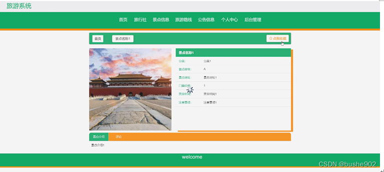 景点信息;在景点信息页面中可以查看景点名称、分类、景点星级、景点地址、门票价格、营业时间、注意事项等内容,进行评论或收藏等操作,如图5-3所示。