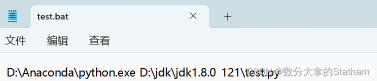 bat脚本内容,前面写后边文件路径的执行程序也就是python的解释器路径。