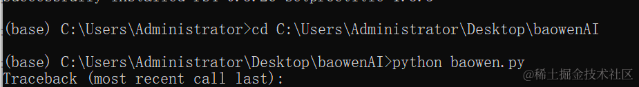 第一步进入你本地保存的目录,比如我的再桌面baowenAI