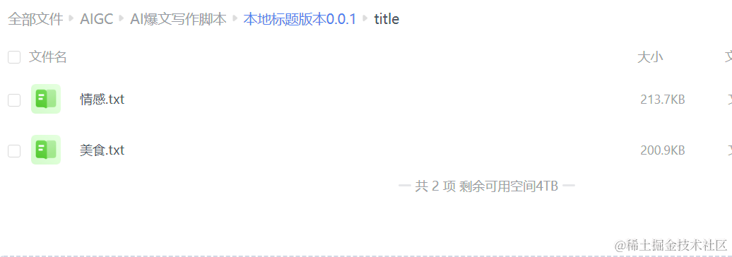 把你想要写的标题放到这个title目录就行,文件名随便写,txt后缀即可,会获取文件夹内所有的txt文件