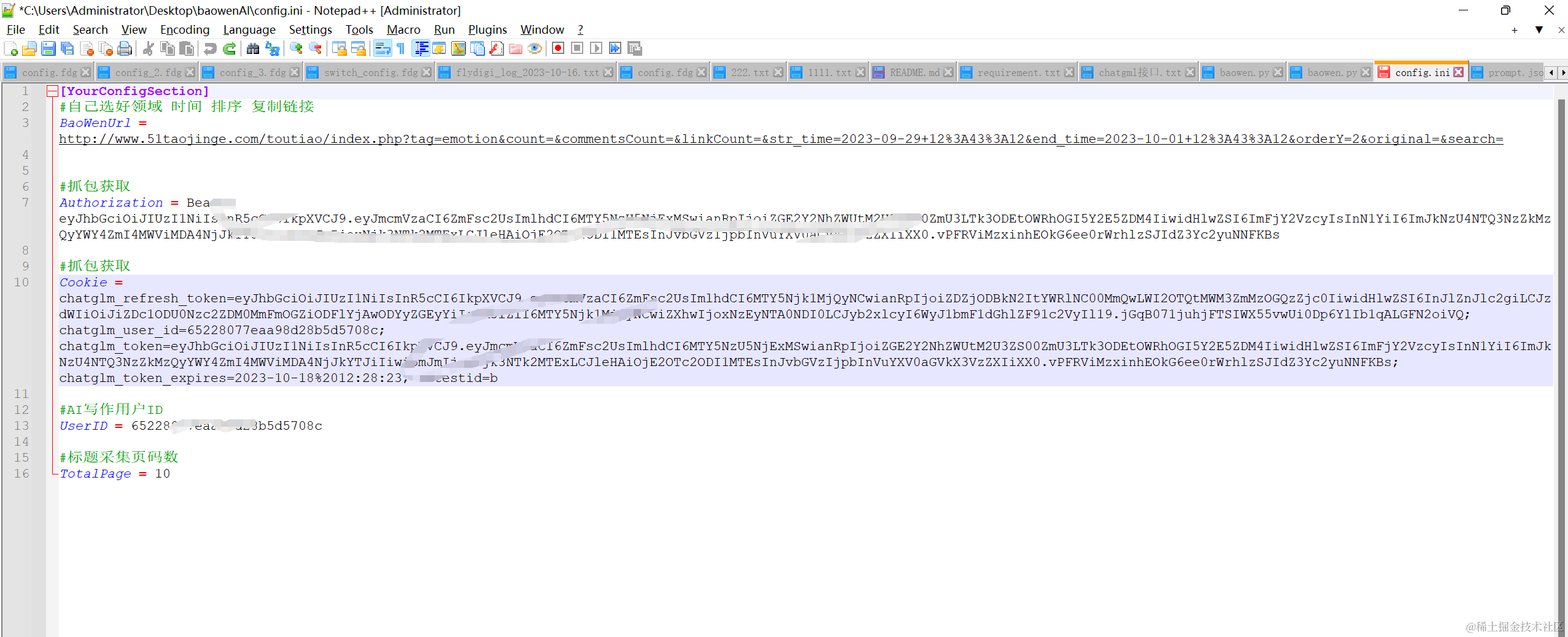 - 配置cookie信息到config.ini
