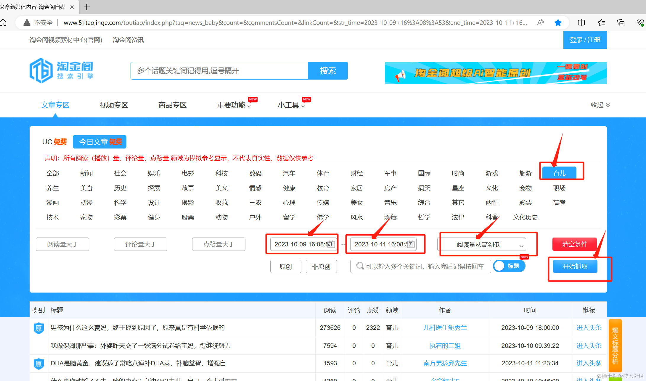 选好领域,开始抓取,然后复制url,配置到Config.ini的BaoWenUrl里面