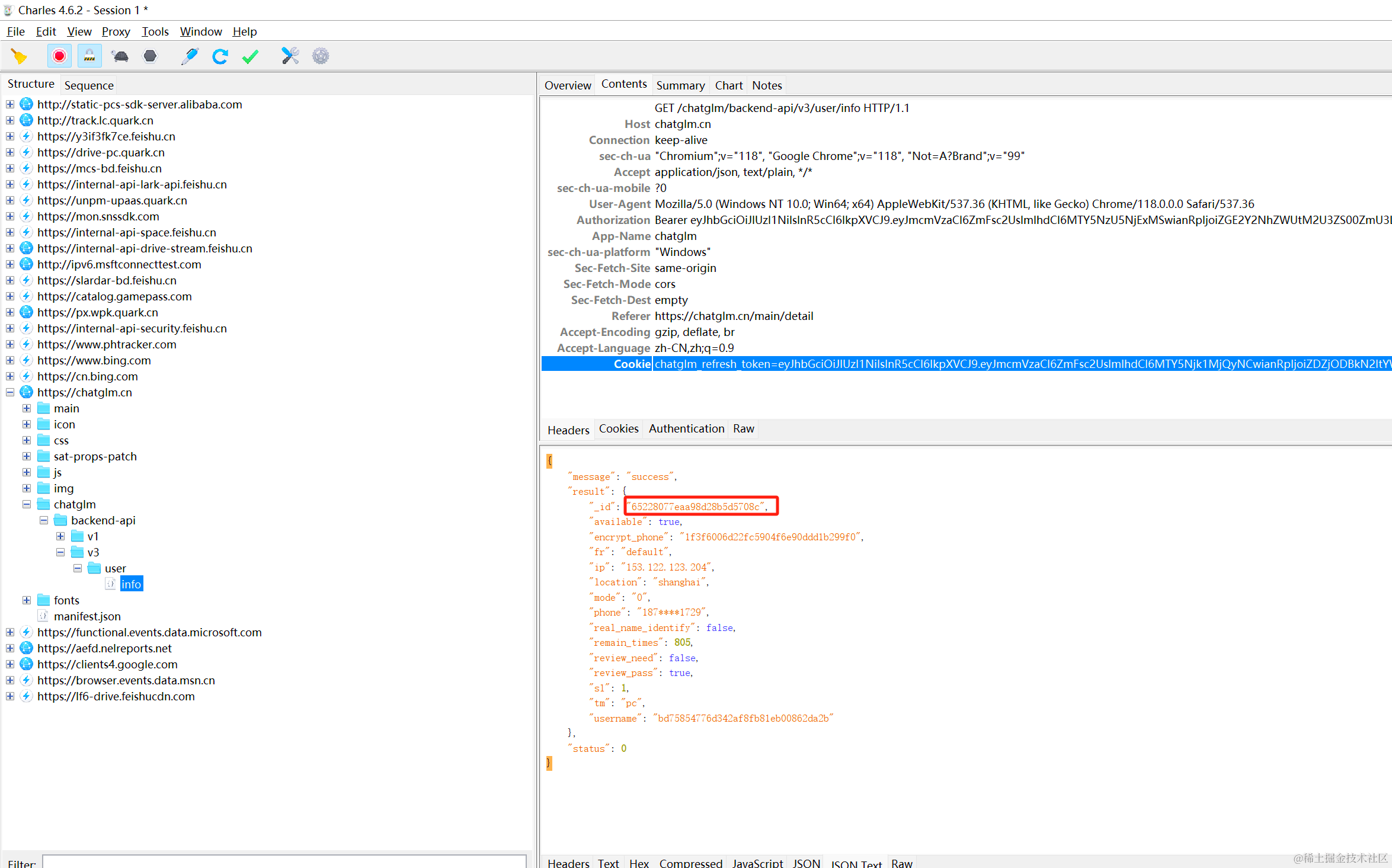 - 首先安装抓包工具获取chatglm的cookie信息