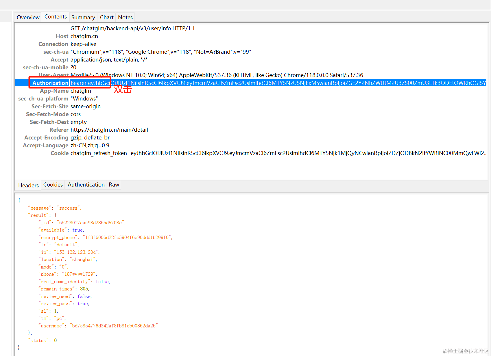 双击下面部分获取Authorization