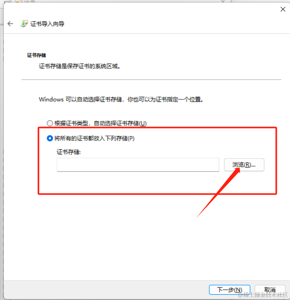 将所有的证书都放入下列存储->浏览