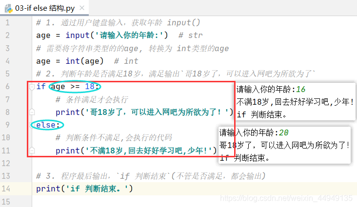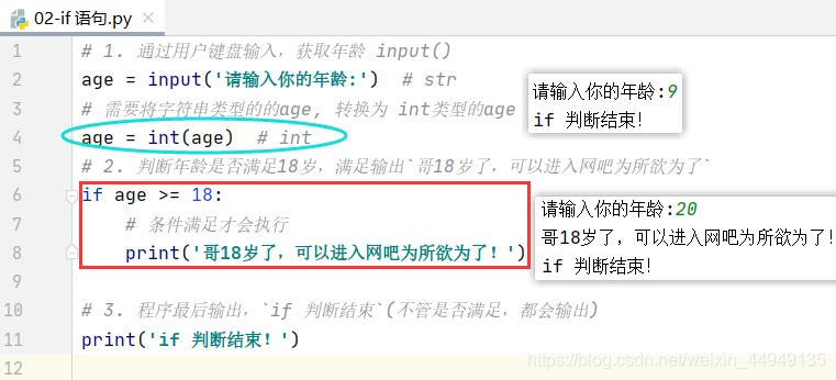 判断年龄是否满足18岁,满足输出