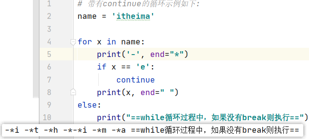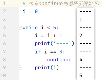 continue 是结束本次循环,继续下一次循环, 即本次循环剩下的代码不再执行,但会进行下一次循环