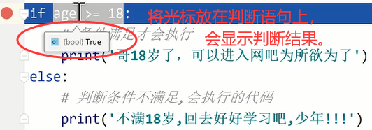 判断条件为 True, 会执行的代码