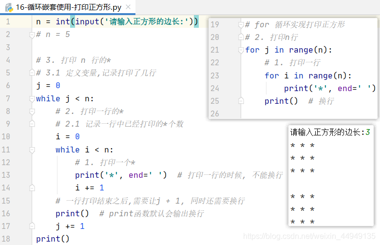 3. for循环与while循环的应用(打印图形)