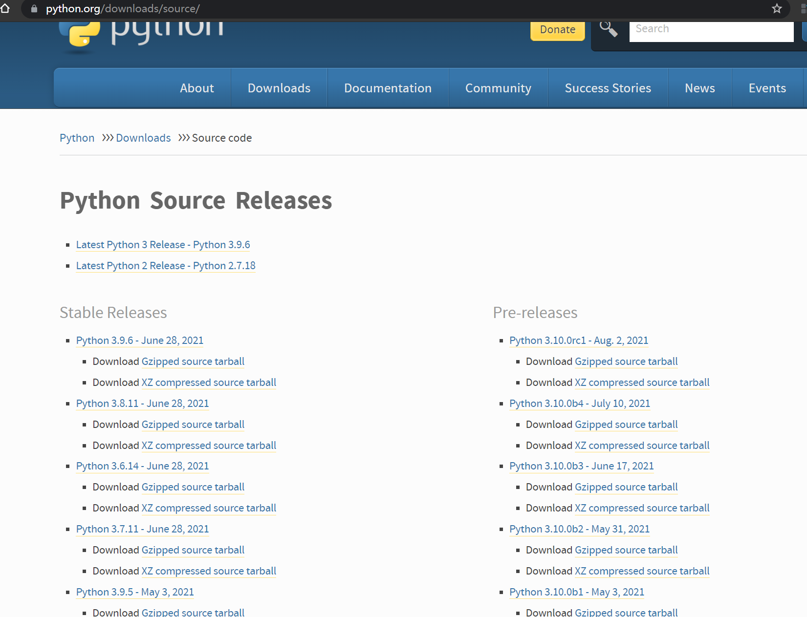 从python官网下载自己想安装版本的源码:https://www.python.org/downloads/source/
