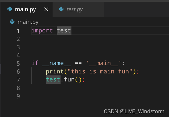2.编写一个其他的python文件test.py,和main.py在同一个目录下。