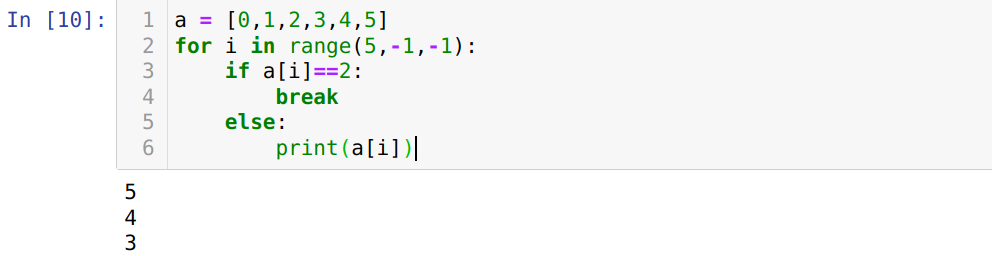 有时候在循环中需要提前终止循环,例如需要找出列表中第一个值为3的元素,找到后进行输出然后终止循环,那么这个思路最关键的就是在循环体中需要判断列表元素是否等于3,如果等于的话就可以终止循环而不再进行之后的循环操作,这个需求就可以通过break语句来实现,代码如下: