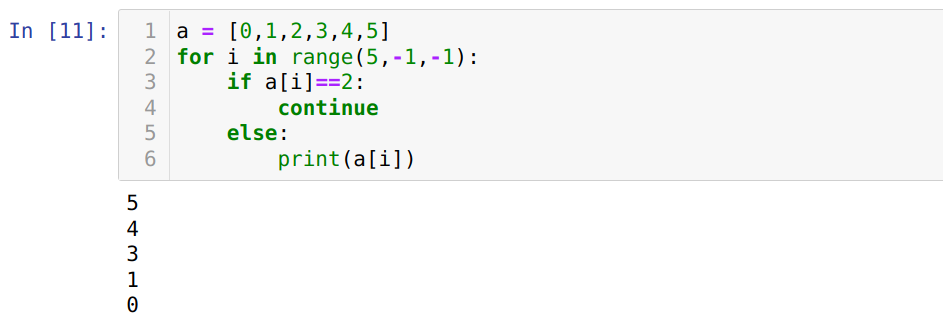 与break语句不同的是,continue语句是用于跳过本次循环,如下: