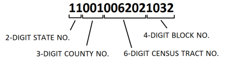 每个人口普查单位均由 FIPS(联邦信息处理标准)代码标识