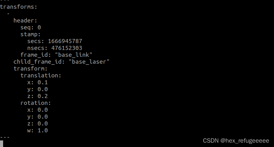 说明是从base_link是frame_id,而base_laser是child_frame_id,然后具体的变换需要根据源码来判断.