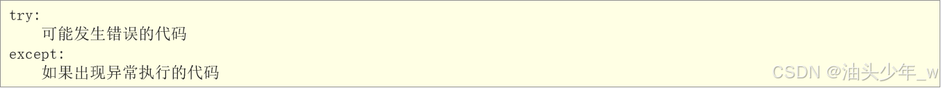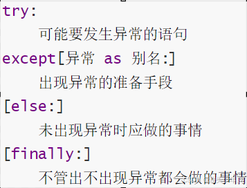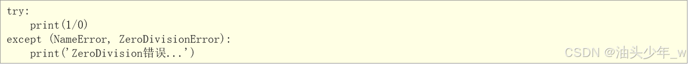 当捕获多个异常时,可以把要捕获的异常类型的名字,放到except 后,并使用元组的方式进行书写。