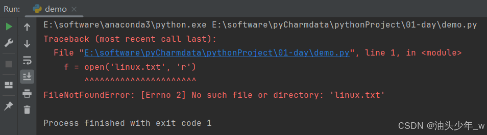当检测到一个错误时,Python解释器就无法继续执行了,反而出现了一些错误的提示,这就是所谓的“异常”, 也就是我们常说的BUG
