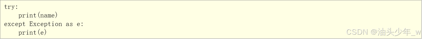 如果我们在最外层代码进行异常捕获,可以捕获到所有的代码异常,一般用Exception