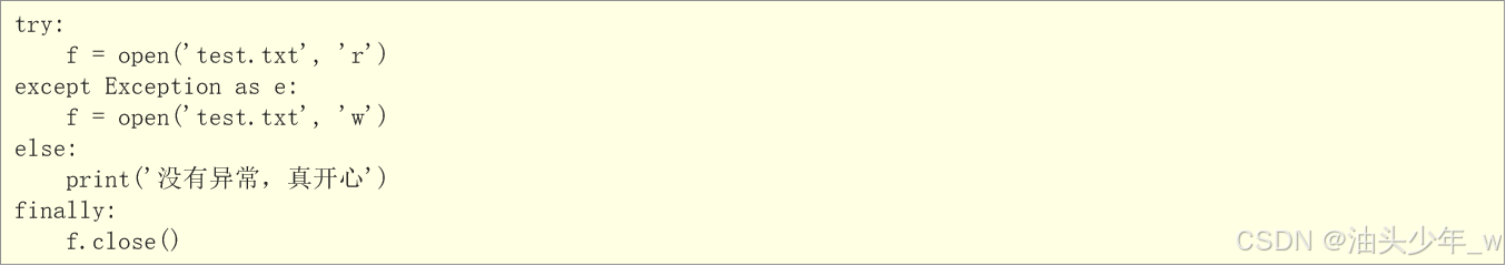 关键字finally:表示程序无论发不发生异常时都会执行的代码,可以用于一些必须要完成的操作,比如关闭文件、关闭系统资源等操作