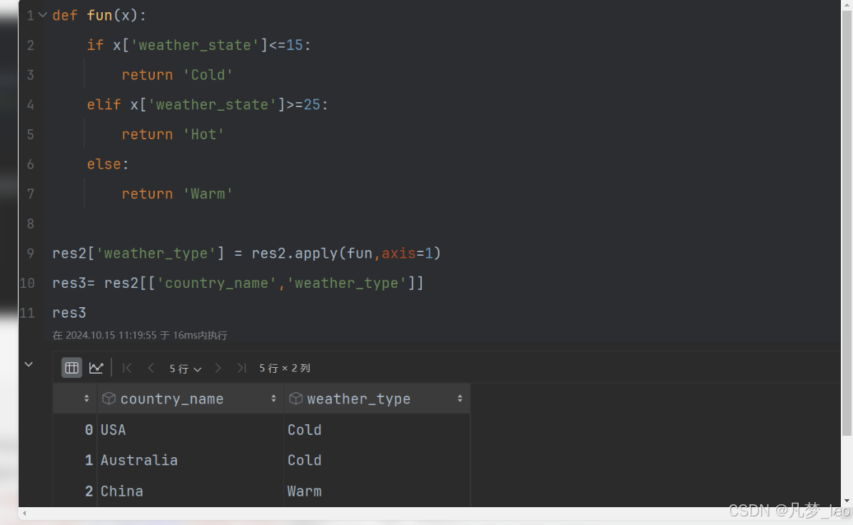 第四步:针对平均天气case when语法 或者pandas中自定义函数的方式开一个新列 赋对应的值