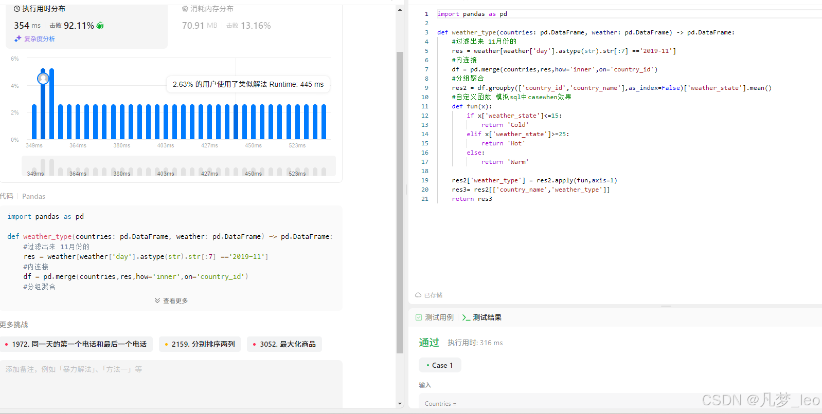 Python数分之Pandas训练 不同方法和详细思路与步骤 解:力扣,1294. 不同国家的天气类型