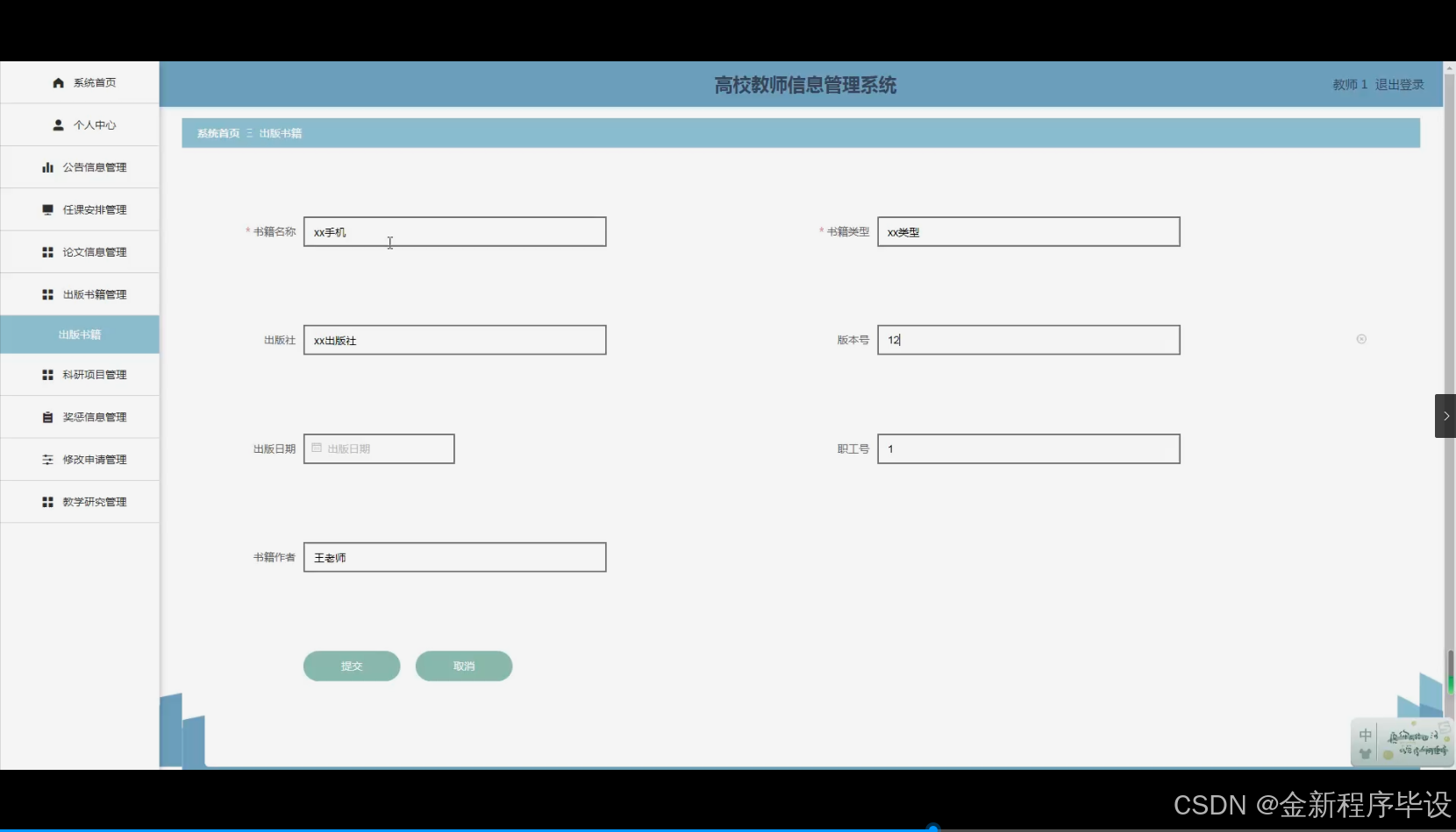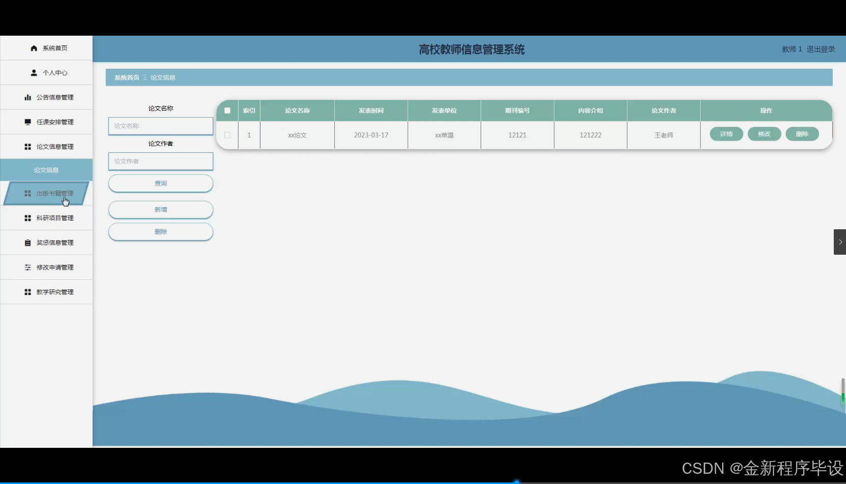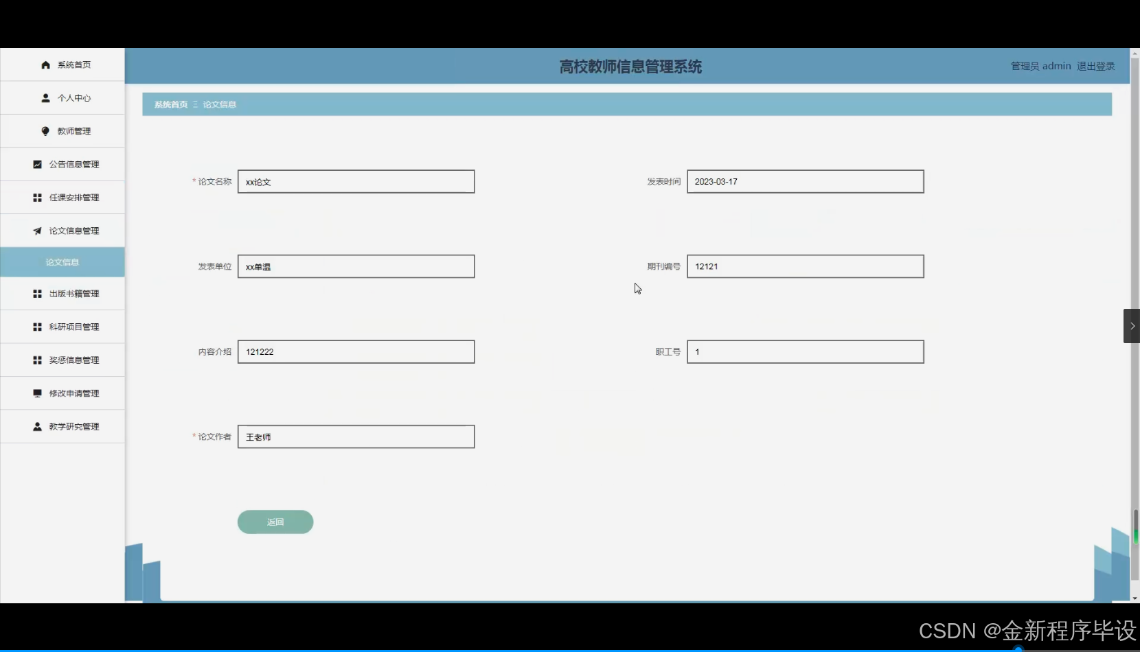 - 理论意义:本选题研究将对高校教师信息管理相关理论基础进行深入剖析。通过对系统功能模块如教师任课安排、论文信息、出版书籍等多方面信息管理的理论研究,有助于完善高校教师信息管理的理论体系。